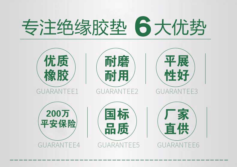 絕緣墊上下表面應不存在有害的不規則性。有害的不規則性是指下列特征之一,即破壞均勻性、損壞表面光滑輪廓的缺陷,如小孔、裂縫、局部隆起、切口、夾雜導電異物、折縫、空隙、凹凸波紋及鑄造標志等。無害的不規則性是指生產過程中形成的表面不規則性。質量好的絕緣膠墊沒有異味,沒有氣泡,沒有凹坑,表面光滑整潔干凈
